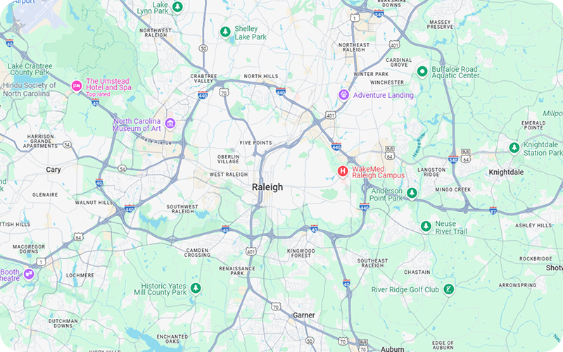 We serve Raleigh and many surrounding cities in Wake, Durham, and Johnston counties, including: